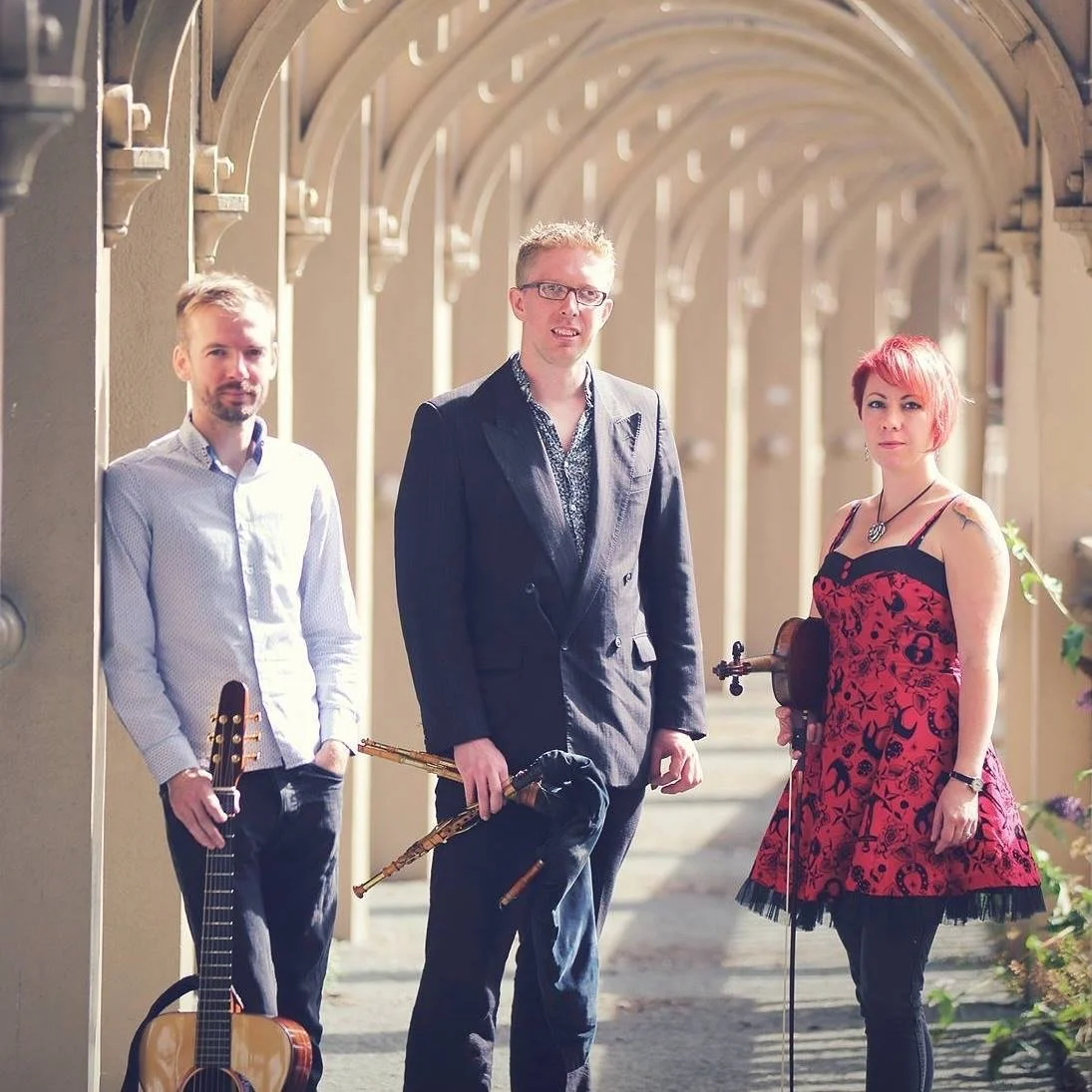 Northumbrian piper Andy May (Jez Lowe and The Bad Pennies, Baltic Crossing), guitarist Ian Stephenson (Kan, Baltic Crossing) and fiddler Sophy Ball (422, Bottle Bank Band) met in the early 2000’s on Newcastle’s vibrant session scene. Fast forward to 2015 and the time felt right to form a trio to focus on high energy instrumental folk, inspired by the music of their native North East. Since then, the band has released 4 albums, and travelled widely to perform at gigs and festivals both in the UK and on the continent.